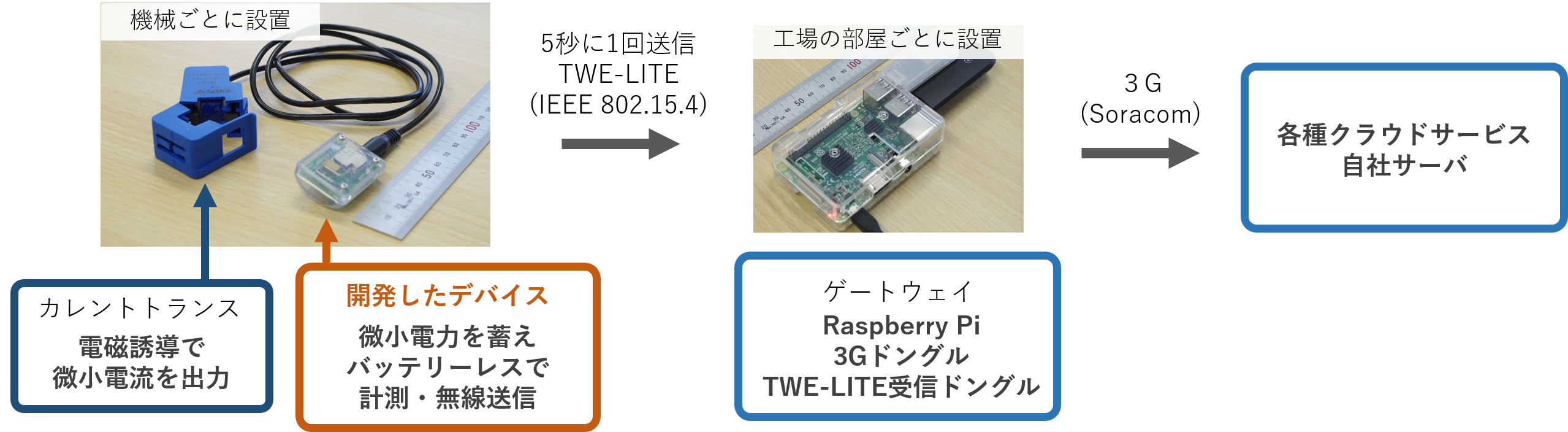 これらの特徴から、既存の家庭・工場を簡単にIoT化 することができます。