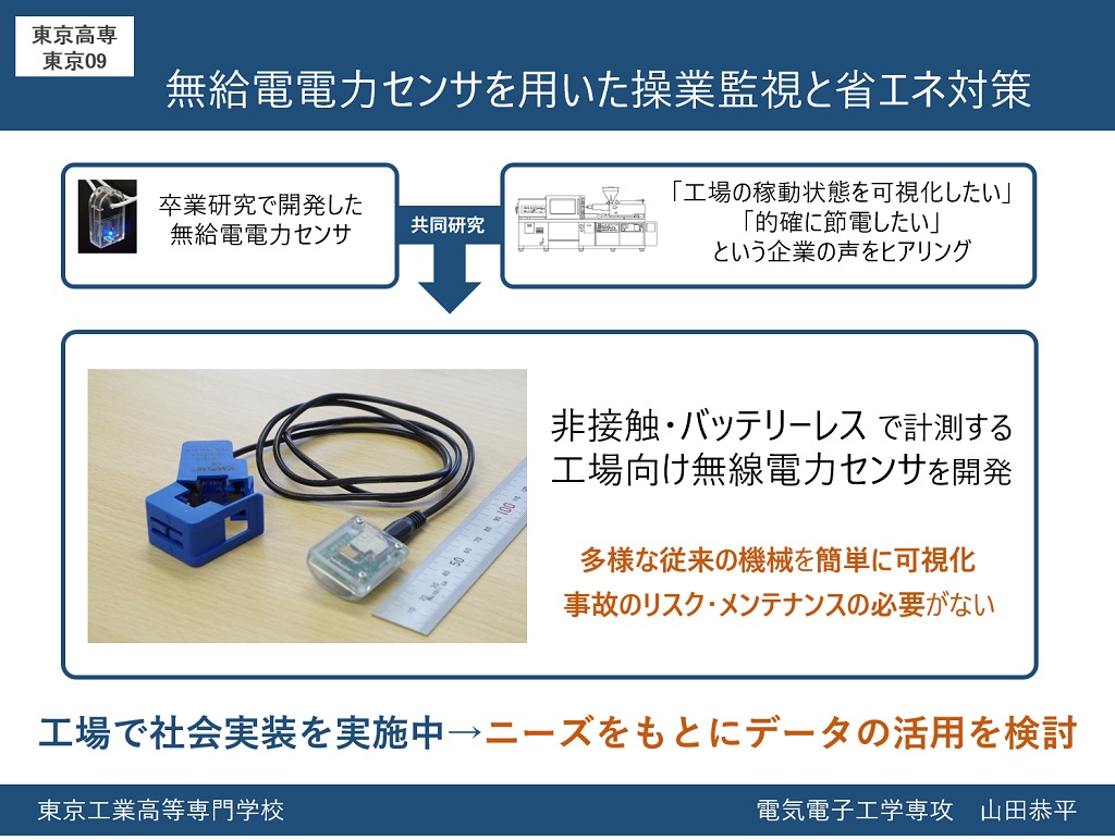 - 発表タイトル: 無給電電力センサを用いた操業監視と省エネ対策